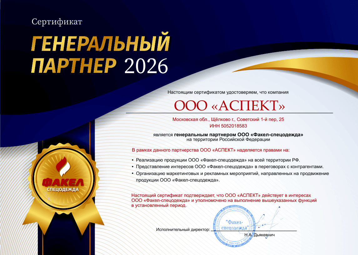 Компания «Аспект» уже более 10 лет работает в сфере поставок спецодежды и СИЗ для предприятий и частных лиц. За это время мы сформировали обширное портфолио продукции для специалистов из различных отраслей. Партнерство с нами обеспечит вашему бизнесу ряд преимуществ: