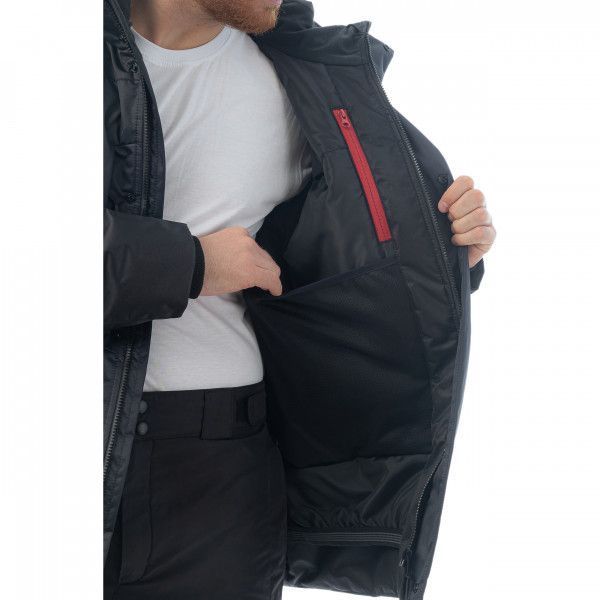 Куртка застёгивается сверху и снизу на тракторную молнию с двойной ветрозащитной планкой на липучках и кнопках. Рукав с регулировкой на застёжке-липучке и теплыми манжетами с прорезями для большого пальца не позволят пробраться холоду внутрь рукавов. В талии куртка утягивается эластичным шнуром с фиксатором, что также помогает сохранению тепла.