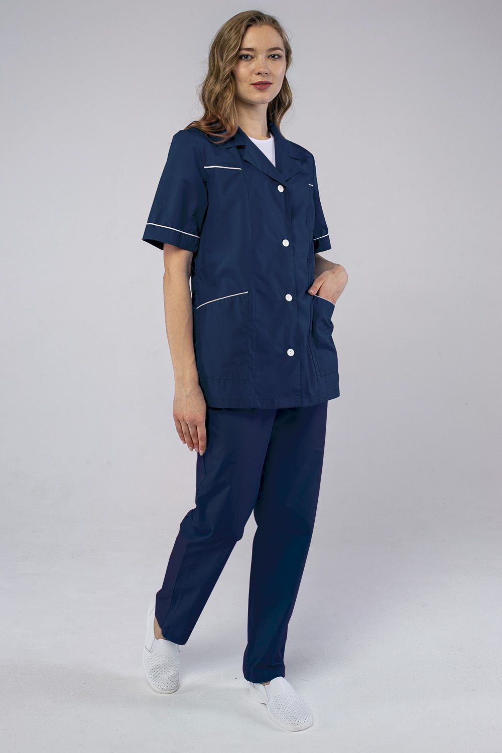 - контрастным белым кантом отделаны кокетка, карманы и манжеты