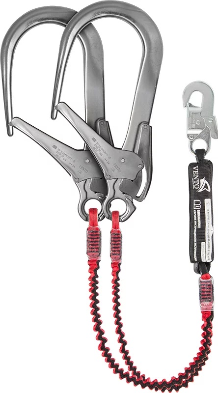 Строп из металлической цепи с монтажным карабином и амортизатором (соединён неразъёмным способом крепления и предназначен для снижения усилия торможения при падении)