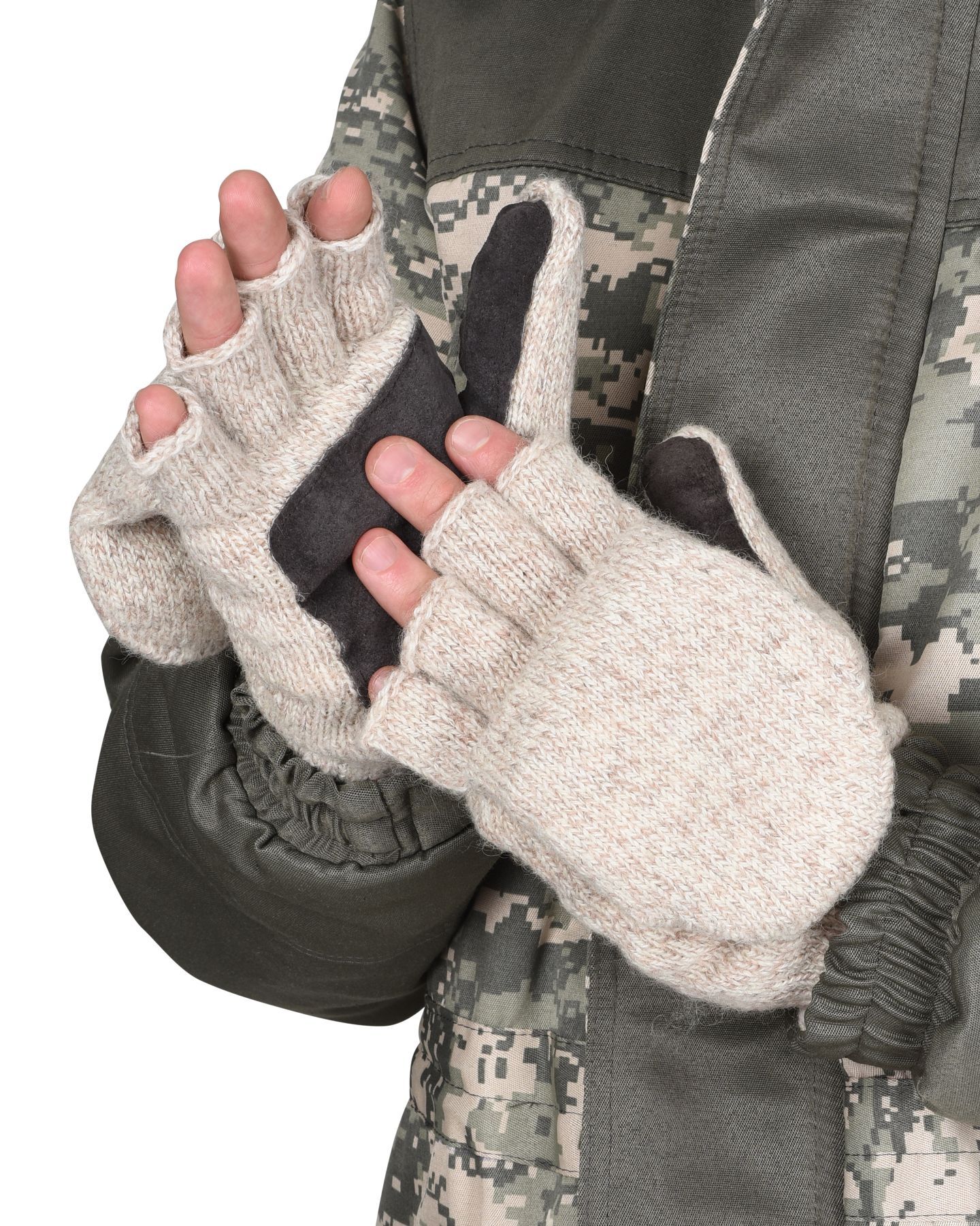 Перчатки утепленные "Сахара Экстра" со спилковым наладонником, шерсть 50%, бежевые, 7 класс (464656)
